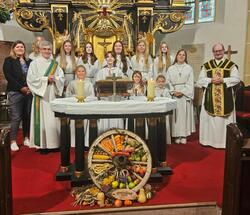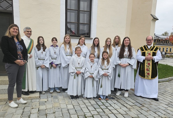 Am Sonntag, den 12. Oktober wurden im Rahmen des Gottesdienstes vier neue Ministrantinnen willkommen geheißen und in den Altardienst aufgenommen und gleichzeitig zwei ausscheidende Ministrantinnen verabschiedet.