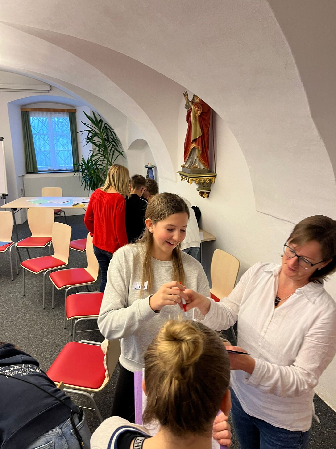 zum zweiten Workshop, um sich auf ihre Firmung vorzubereiten.