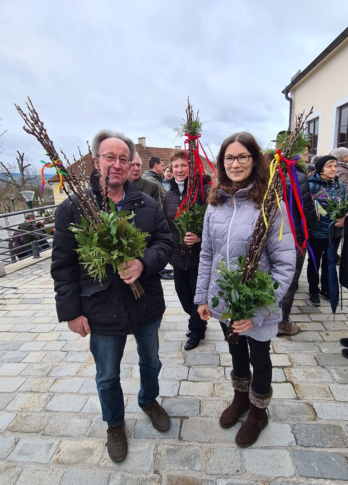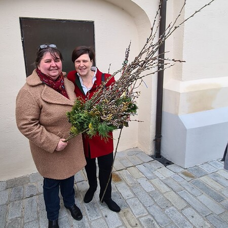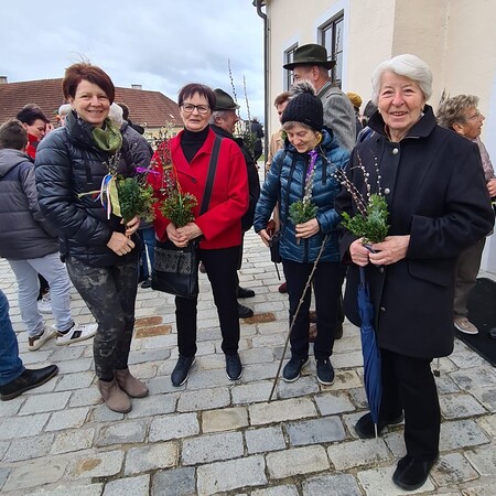 Wie jedes Jahr gab es auch heuer wieder ware Kunstwerke an Palmbuschen zu sehen. In Allhartsberg spannt sich der Bogen vom einzelnen Zweig bis zum kunstvoll gebundenen Buschen, der oft mannshoch und mit Äpfeln und Bändern geschmückt ist.