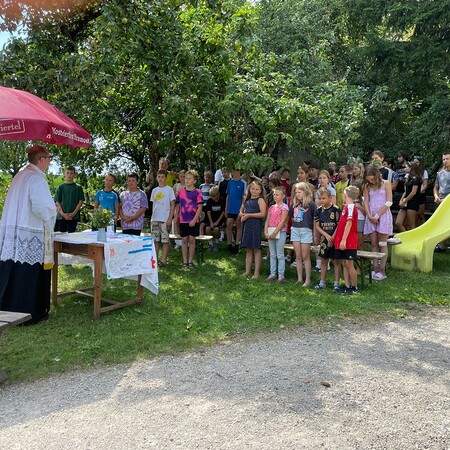 Mit vielen Spielen und Aktivitäten verging die Zeit wie im Flug. Als Höhepunkt der Jugnscharwoche besuchte P. Vitus die Kinder und feierte mit Ihnen eine Lagermesse, die von den BetreuerInnen und Kindern gemeinsam liebevoll vorbereitet und gestaltet wurde.