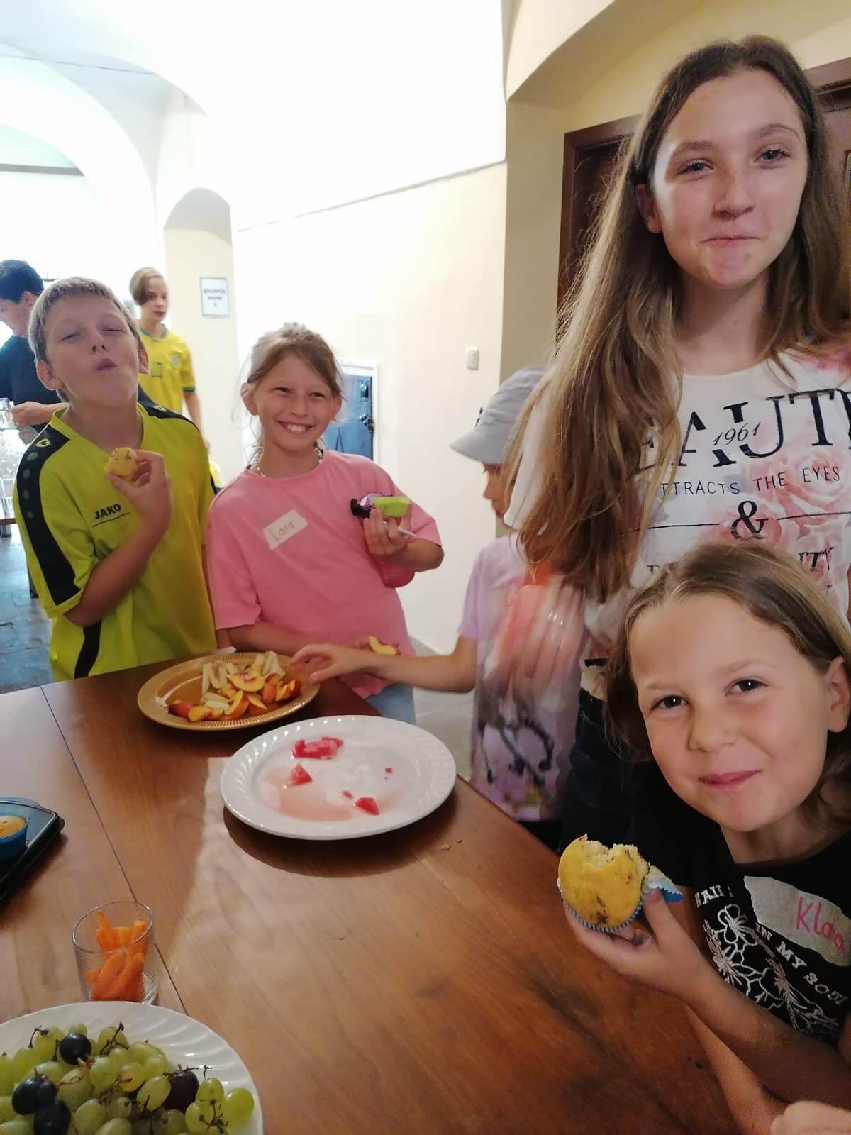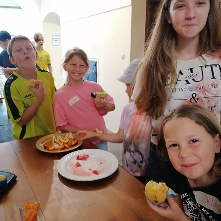 26 Kinder nahmen an dem kunterbunten Vormittag teil und besuchten alle 7 Kontinente, auf denen gespielt und musiziert wurde. Ganz besonders war auch die Pause, in der die Kinder Früchte aus aller Welt genießen durften, sowie selbstgebackene Muffins und Cookies.