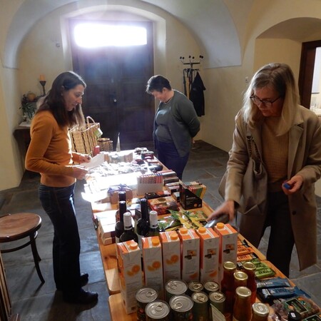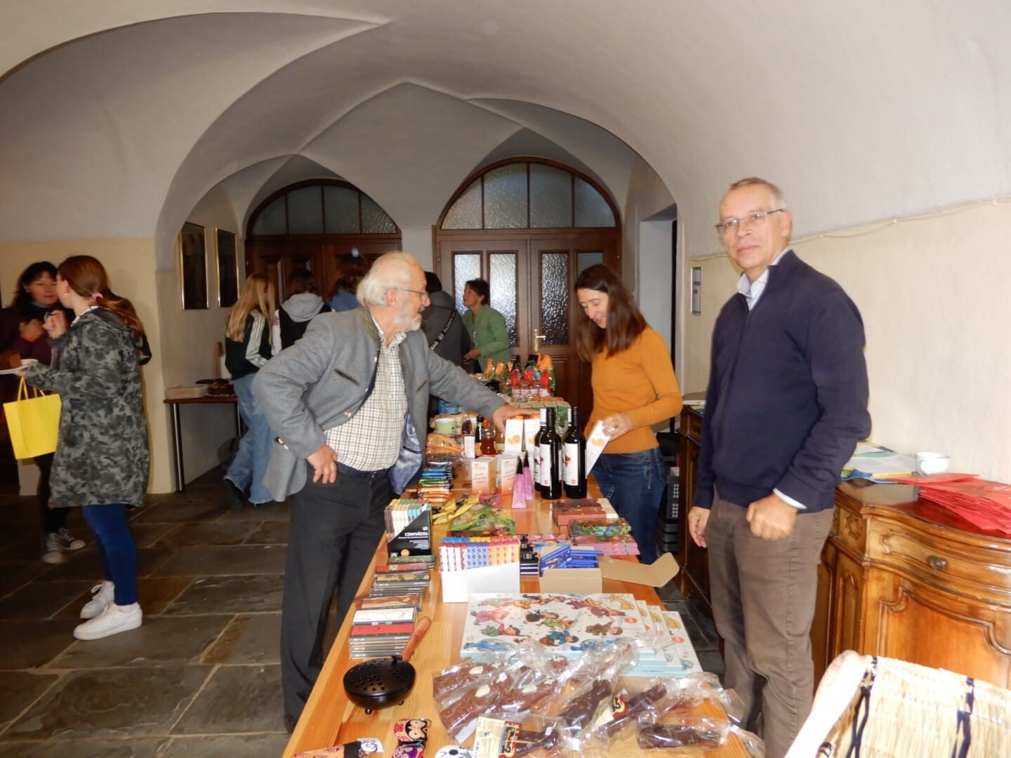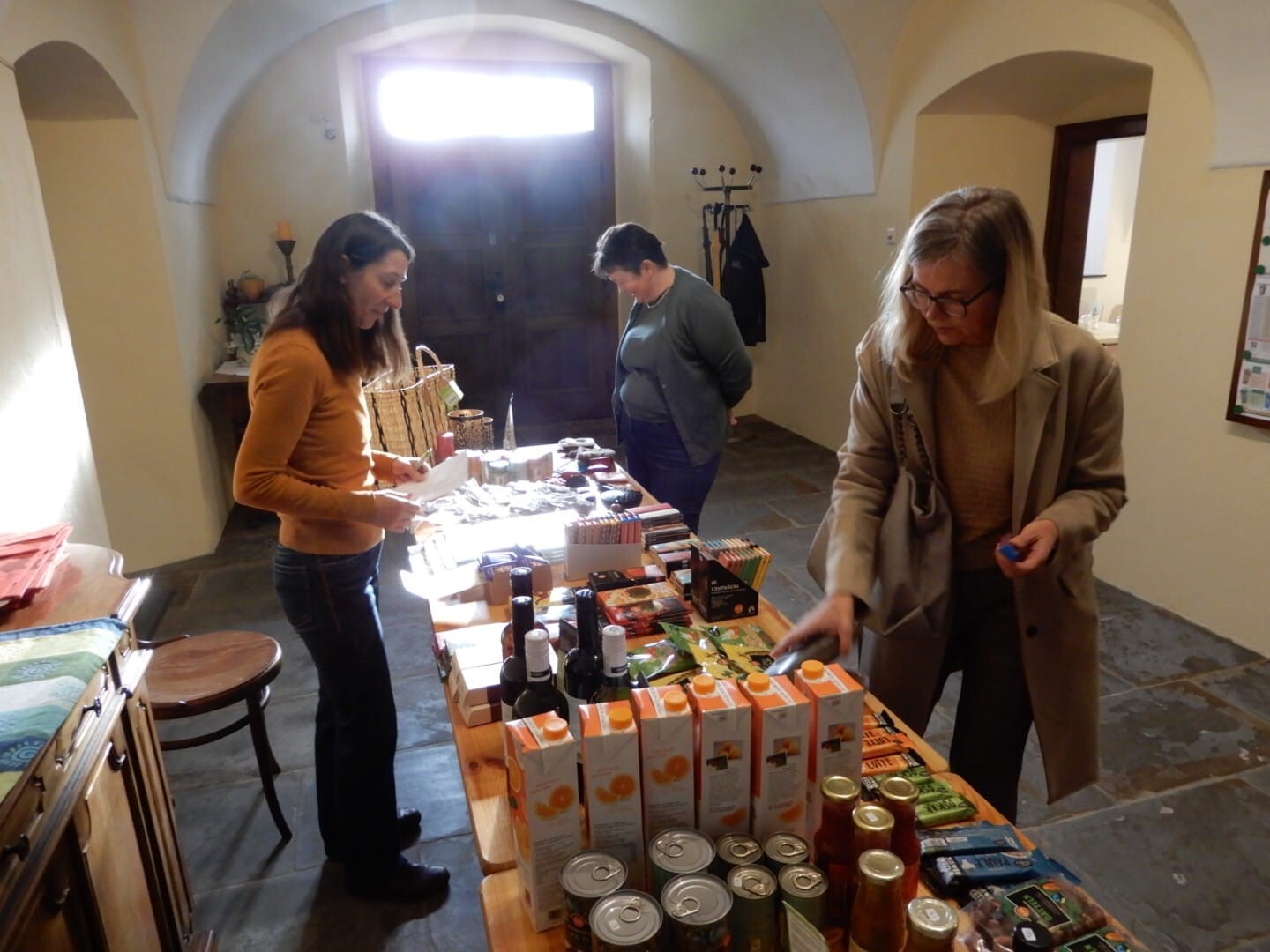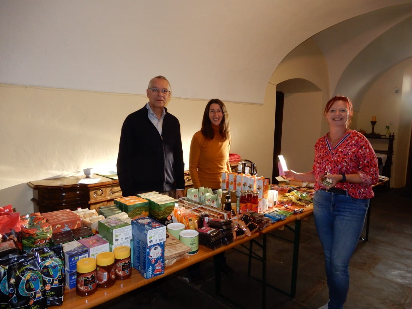 Hinterher kamen die Gottesdienstbesucher und -besucherinnen in den Pfarrhof zum EZA- Markt des Katholischen Bildungswerkes mit fair produzierten und gehandelten Produkten aus dem Weltladen. Das Angebot reichte von Kaffee, Tee und Nudeln bis zu Gewürzen und Schokolade.