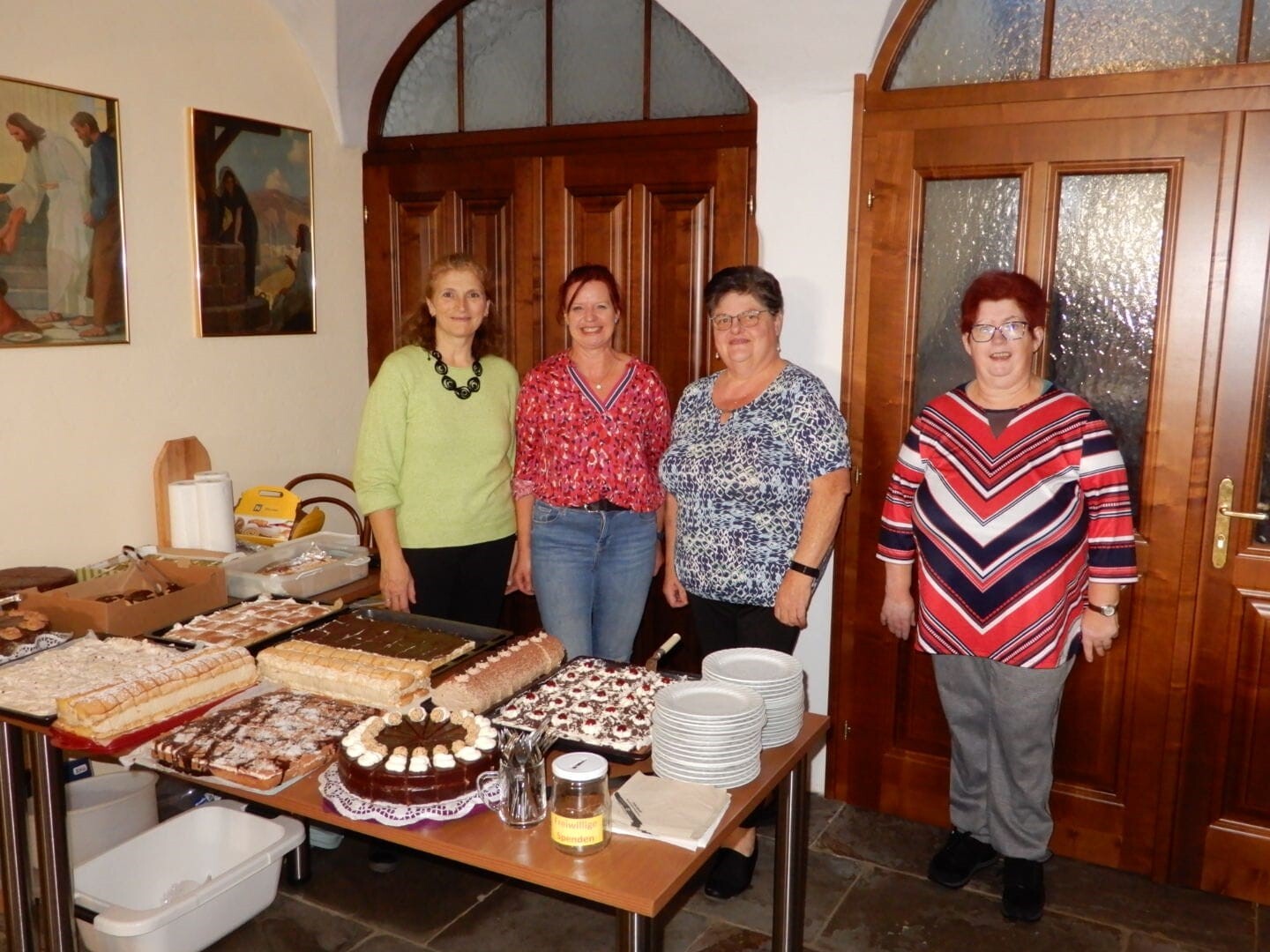 Gleichzeitig lud die Katholischen Frauenbewegung Allhartsberg zum Pfarrkaffee mit allerlei köstliche Mehlspeisen. Die liebevoll dekorierten Tische verlockten zum Sitzenbleiben beim sonntäglicher Gedankenaustausch mit netten Leuten. Von Torten über Kuchen bis hin zu Schaumrollen und Kardinalschnitte, für jeden Gusto war etwas dabei.
