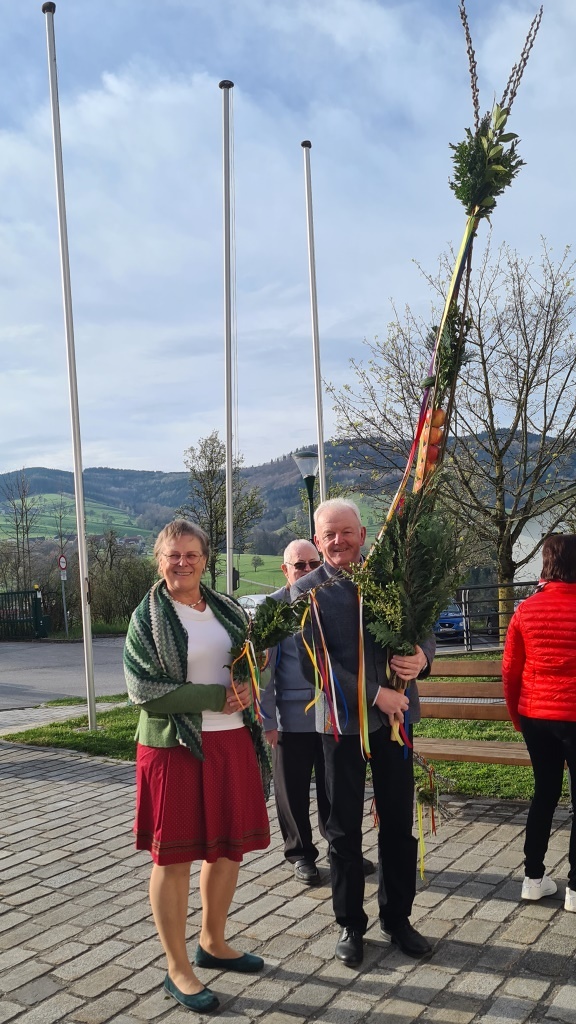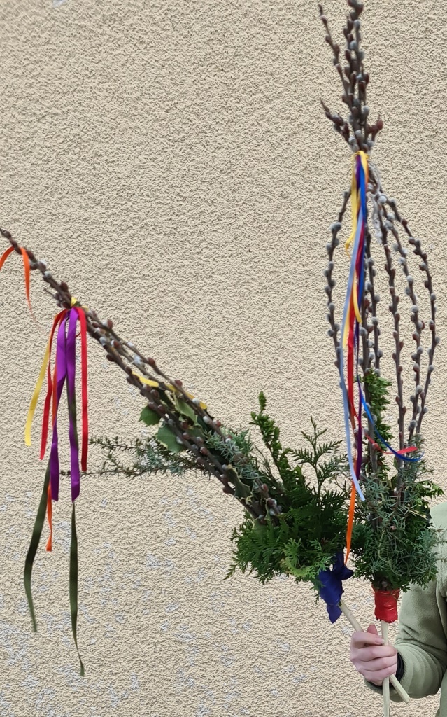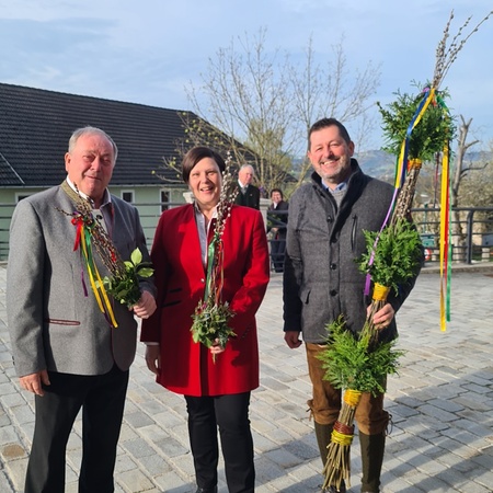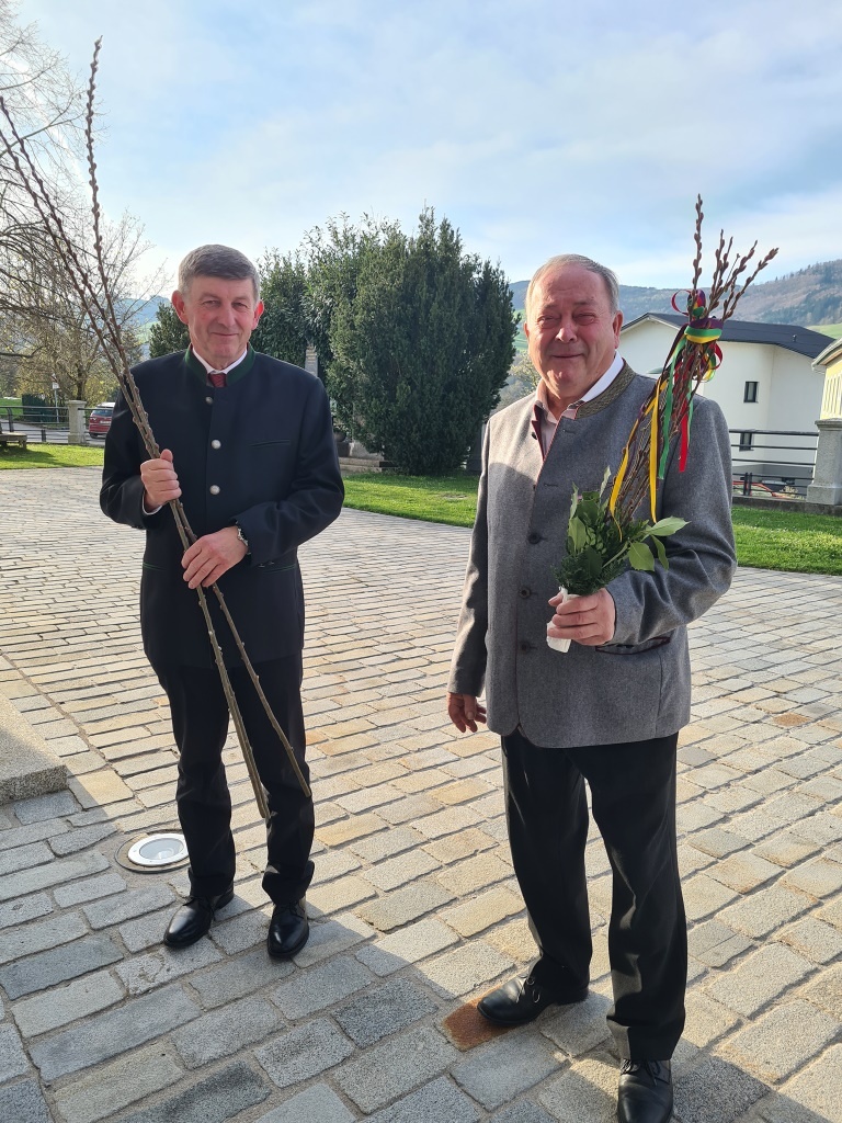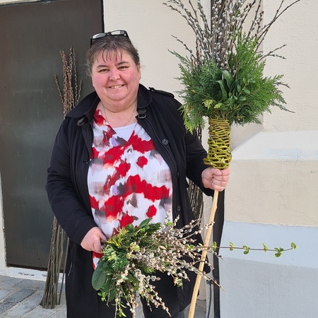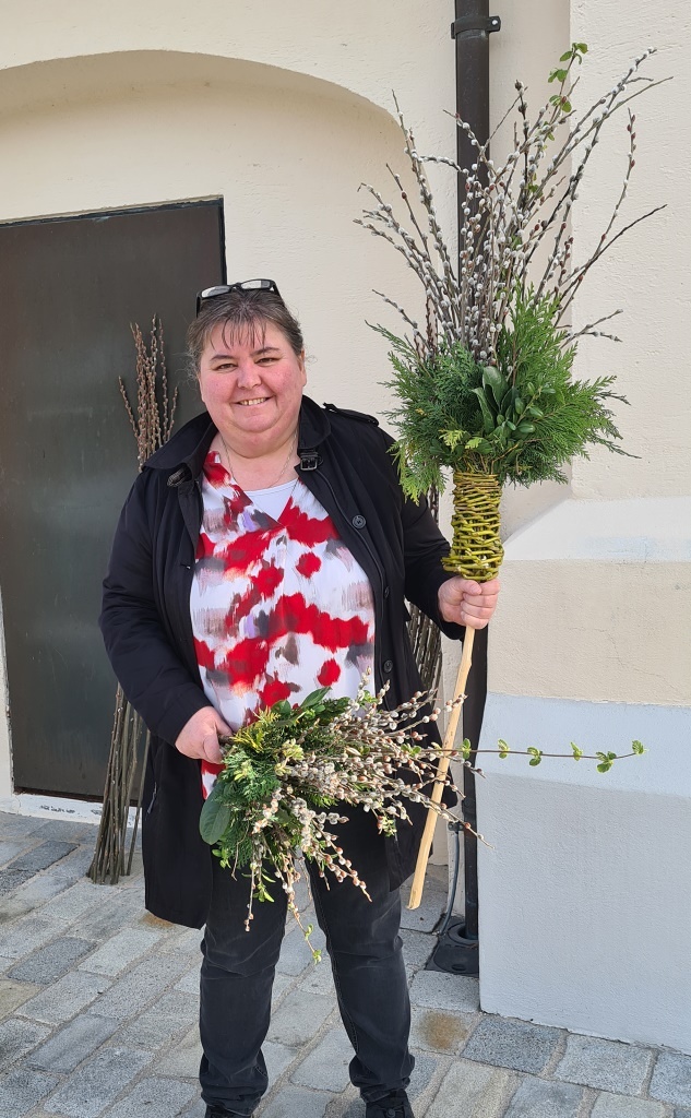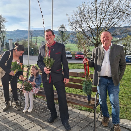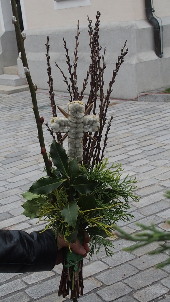 Wie jedes Jahr gab es wieder die verschiedensten Arten von Palmbuschen zu sehen. Die Variationen reichen vom einzelnen Zweig bis hin zu mannshohen, mit Äpfel und Bändern geschmückten Kunstwerken. Jeder Palmbuschen trägt ein eigenes Stück Familientradition in sich.