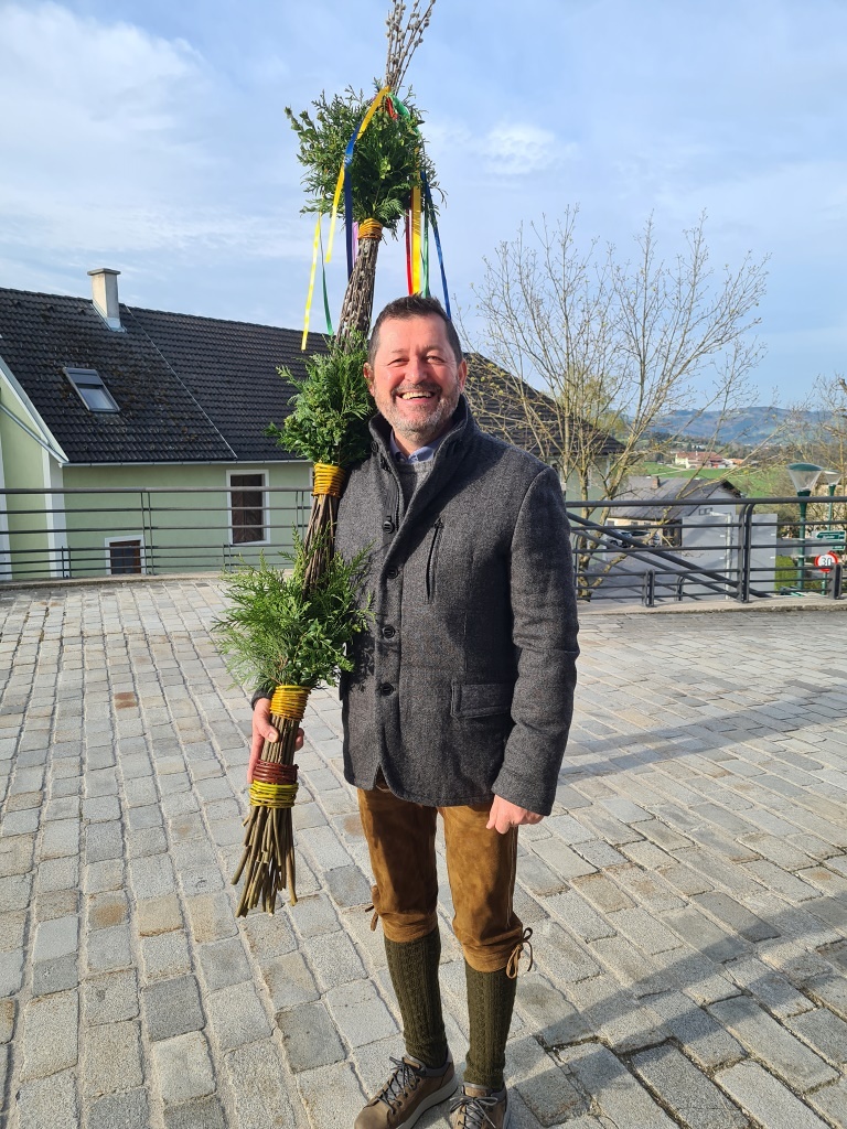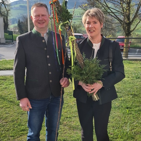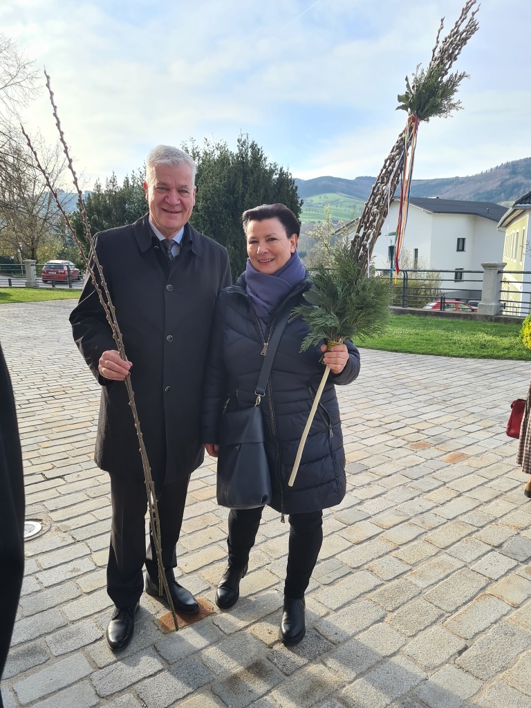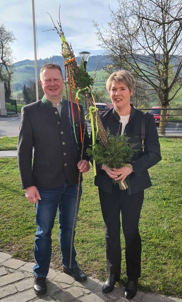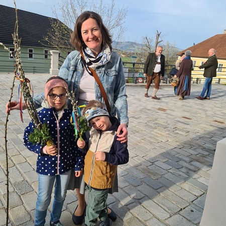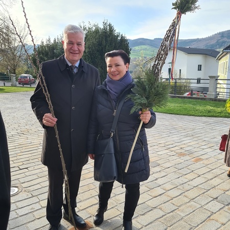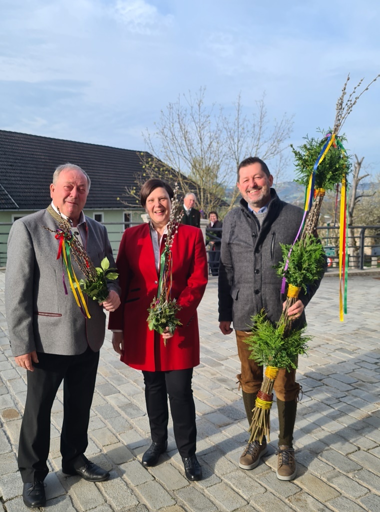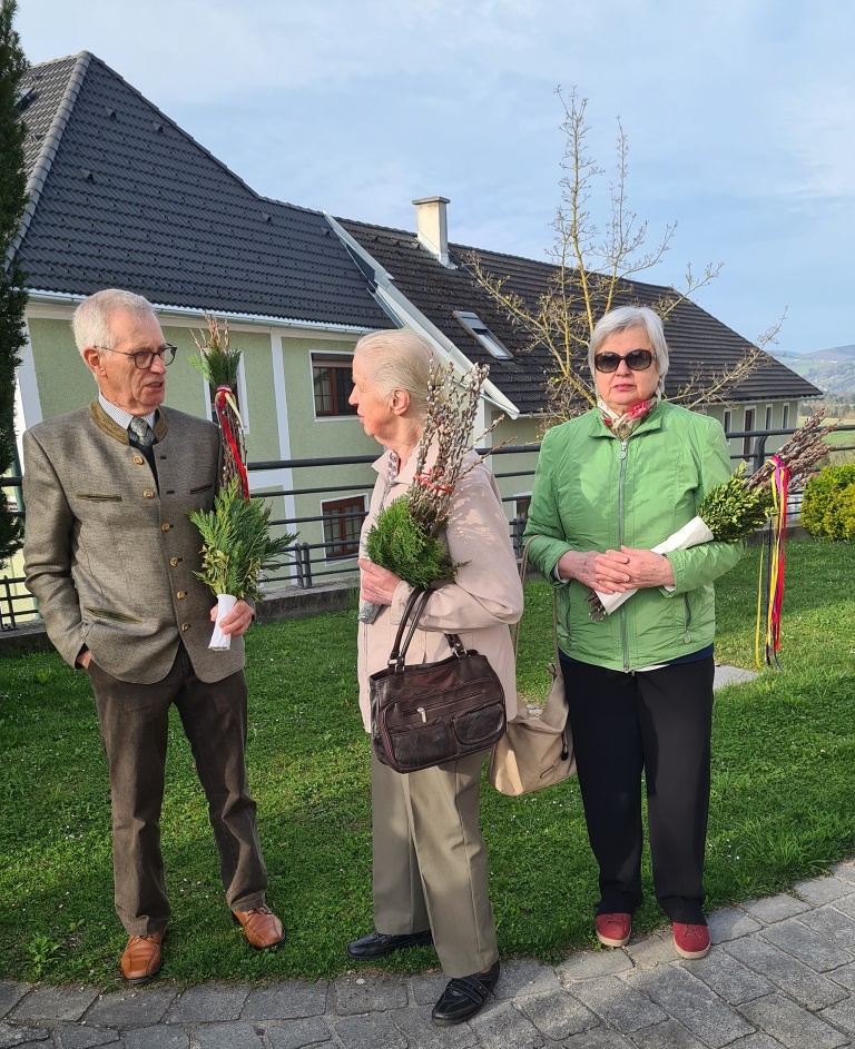 Wie jedes Jahr gab es wieder die verschiedensten Arten von Palmbuschen zu sehen. Die Variationen reichen vom einzelnen Zweig bis hin zu mannshohen, mit Äpfel und Bändern geschmückten Kunstwerken. Jeder Palmbuschen trägt ein eigenes Stück Familientradition in sich.