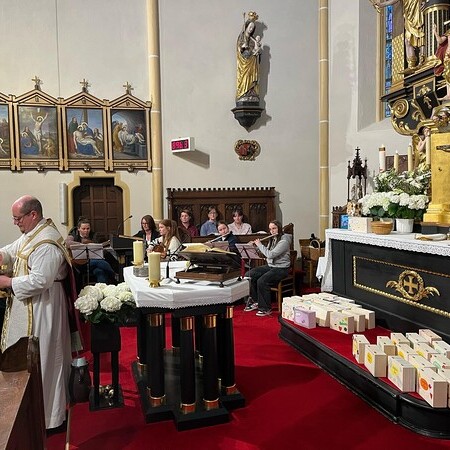Mit jedem Schritt näher an ihr Ziel gelangend, erreichten sie schließlich die Pfarrkirche in Allhartsberg, wo sie gemeinsam die Firmsendungsmesse feierten.