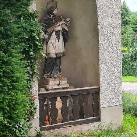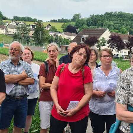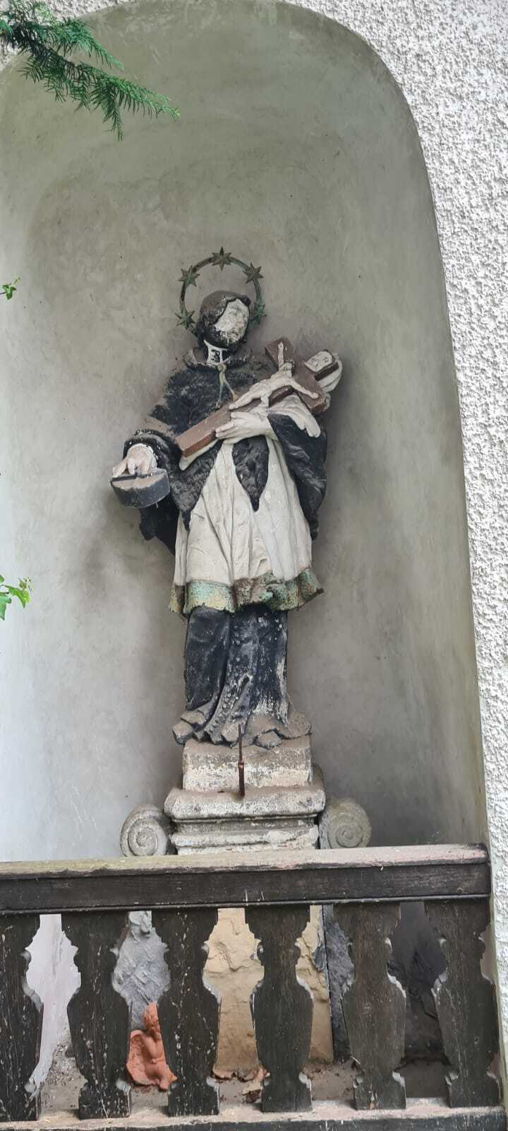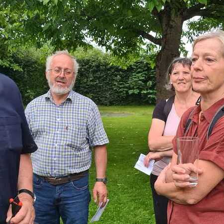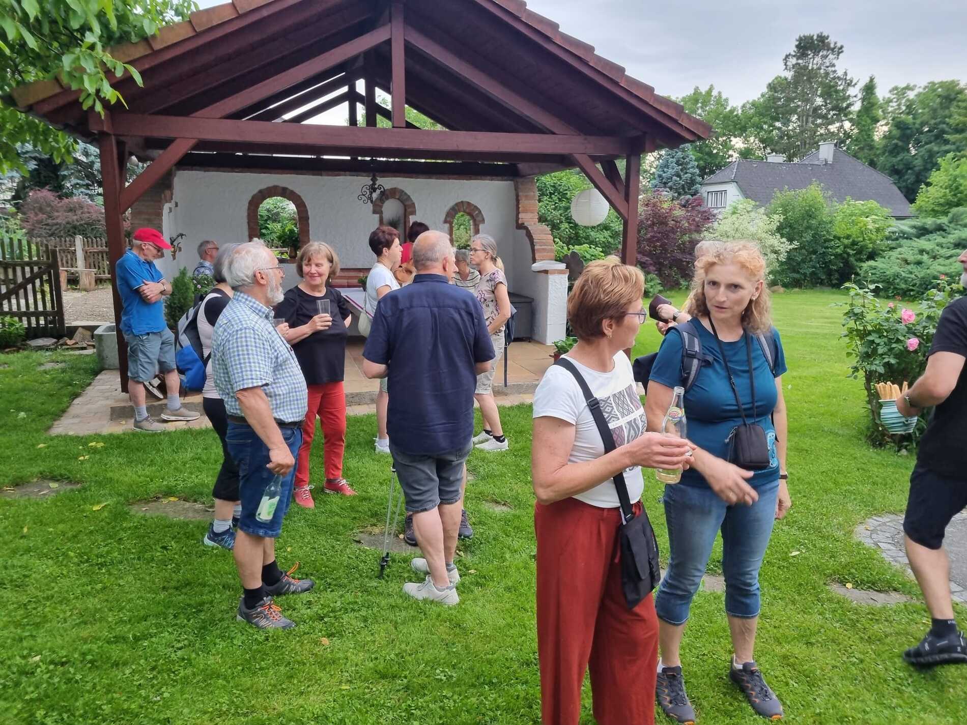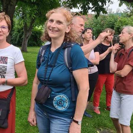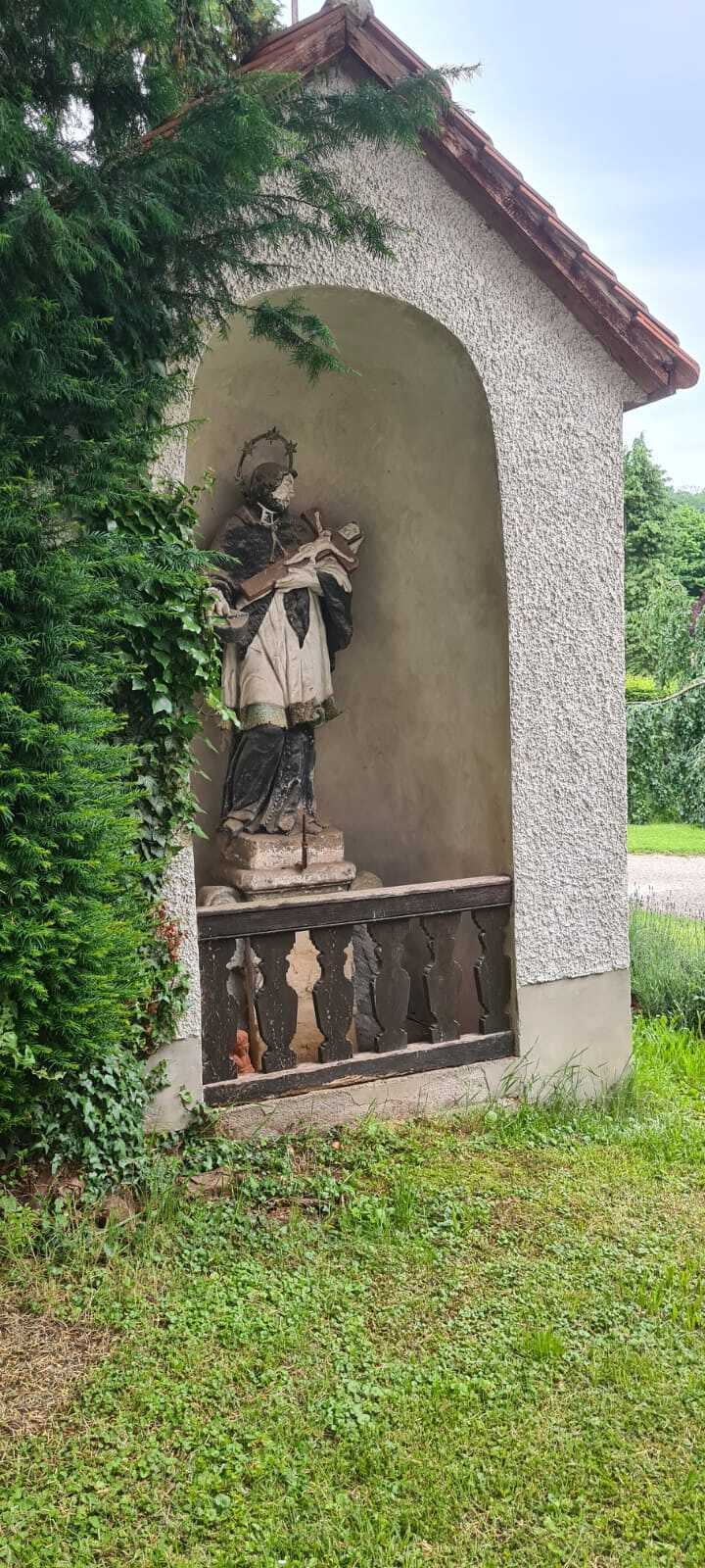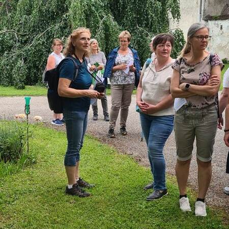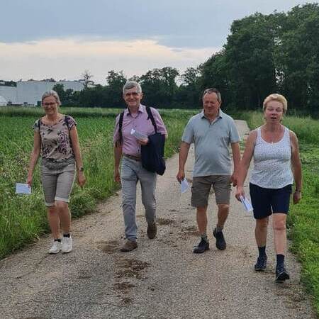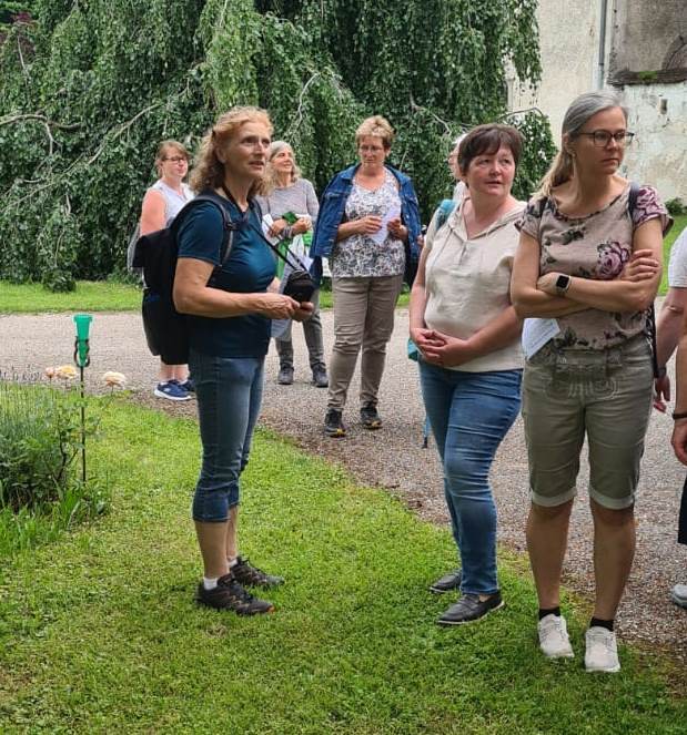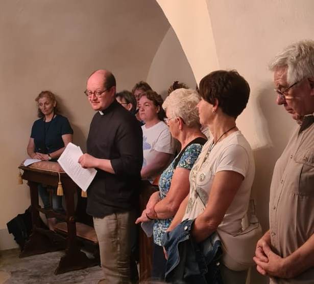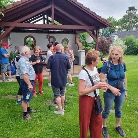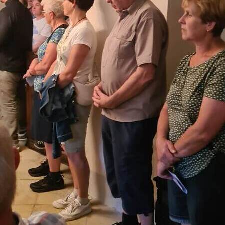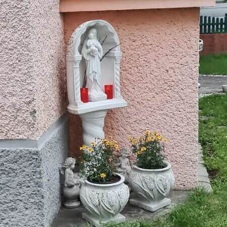 Gestartet wurde beim Bahnhof Kröllendorf, von dort ging es nach einer kurzen Begüßung durch Gerlinde Geiger zur Schwarenthorer Kapelle in der Nähe des Sportplatzes. Nach einigen Worten des Besitzers, Schwarenthorer Thomas, einem Marientext und einem Lied ging es weiter zur Kapelle ins Schloss Kröllendorf. Dort erzählte die Besitzerin Frau Andrea Kafka einiges über die Geschichte der Kappelle und des Schlosses. Nach dem Tagesevangelium fand Pater Vitus passende Worte zum Evangelium und zu den Kapellen. Weiter führte die Wanderung zurück zum Lagerhaus und dann entlang der Bahntrasse zum Marterl im Garten von Frau Anna Schnabl. Nach den erklärenden Worten zum Anna-Marterl gab es einen schönen, hoffnungsvollen und tröstlichen Meditationstext zur hl. Anna.. Die nächste Kapelle auf der Route war die Latzelsberger-Kapelle. Auch dort wurde gemeinsam gebetet, gesungen und Texte verlesen. Nach einer Trinkpause beim Hause Huber- Latzelsberger, die auf grund des warmen Wetters sehr gern angenommen wurde, ging es zurück zum Ausgangspunkt. Die Marienstatue im Garten der Fam. Bruckschwaiger bildete den Abschluss der Kapellenrunde. Auch dort wurde die Gruppe besonders herzlich empfangen und nach Fürbitten und einem Segensgebet mit Getränken und Brötchen bestens bewirtet.