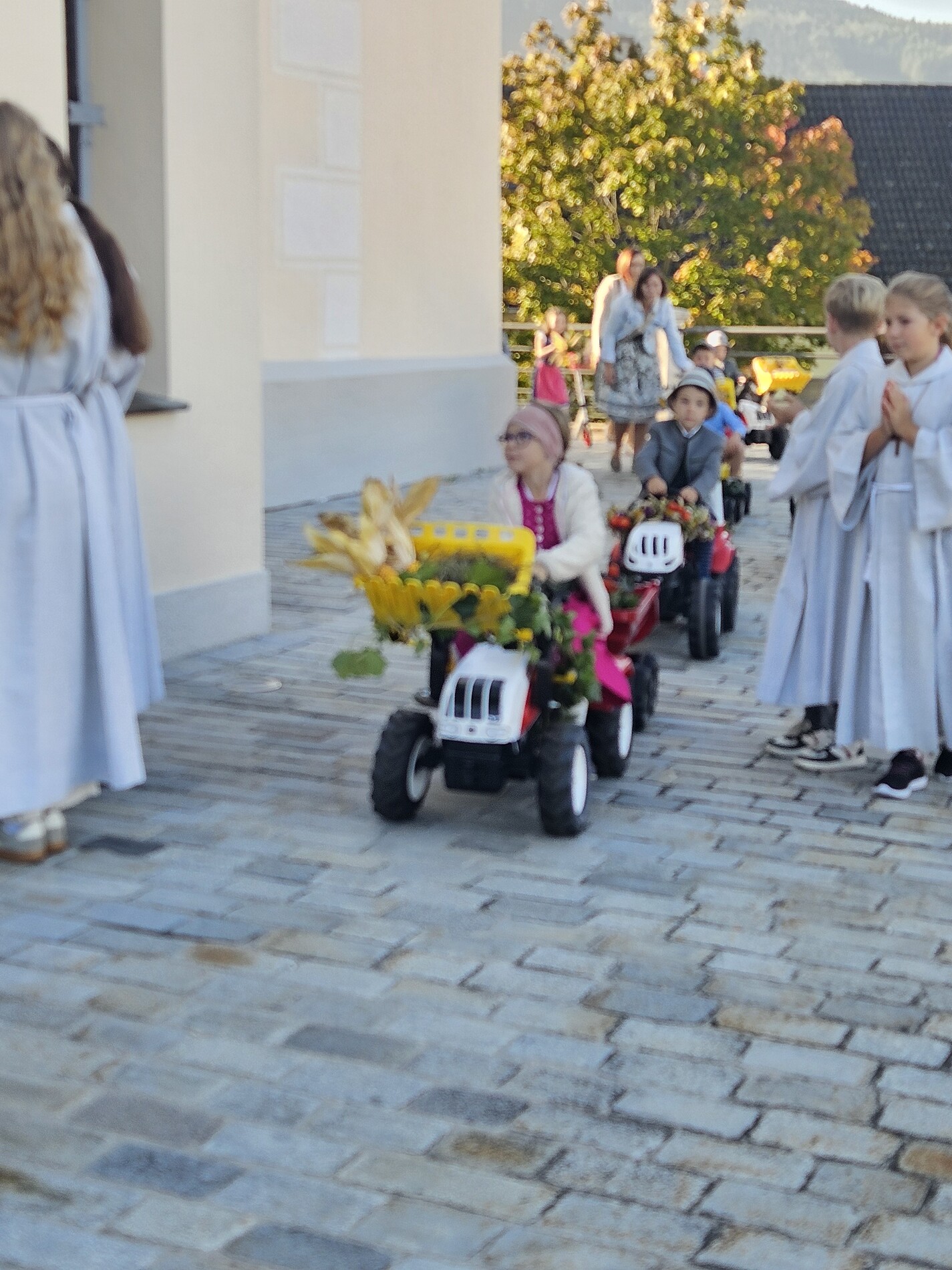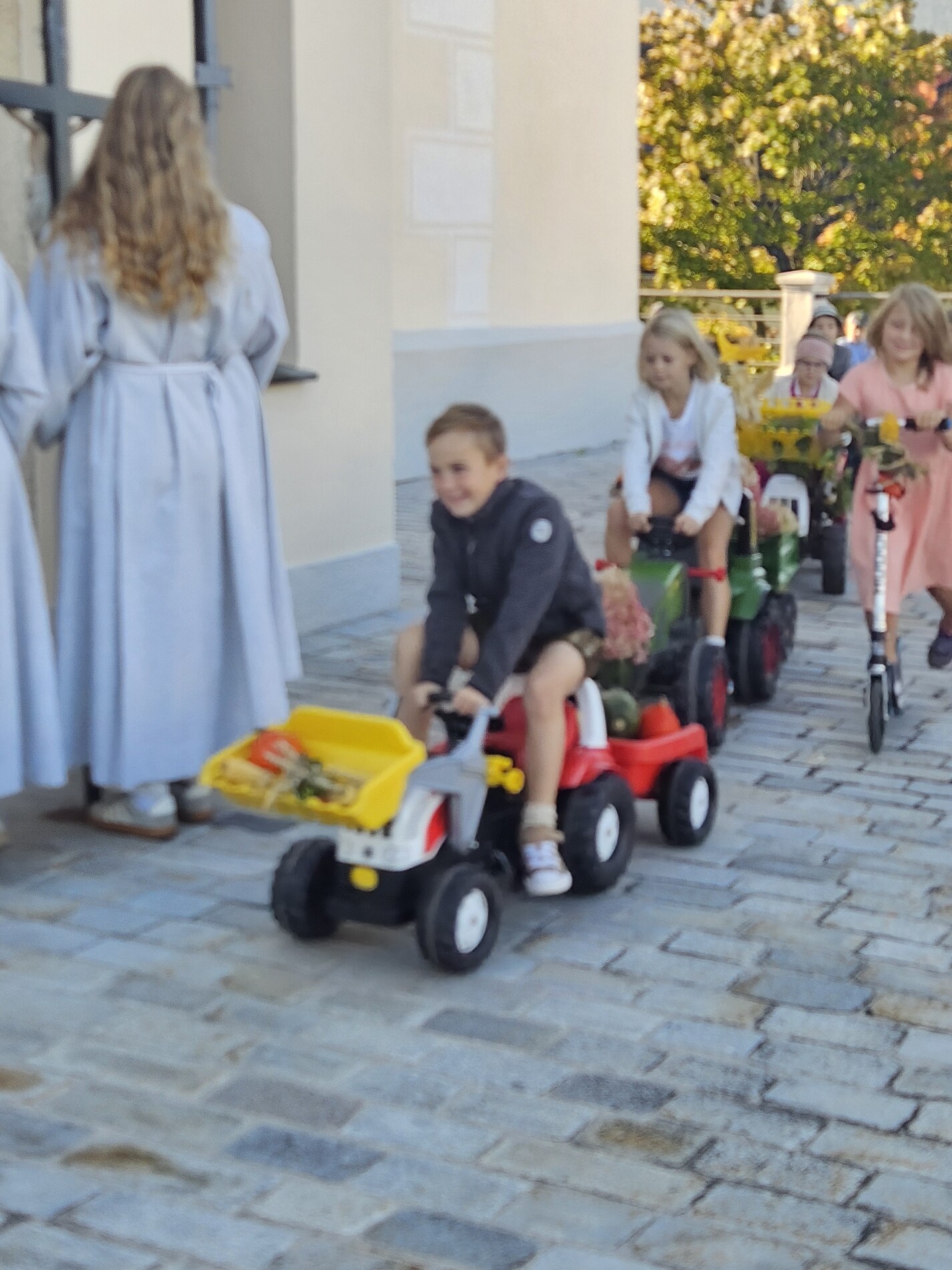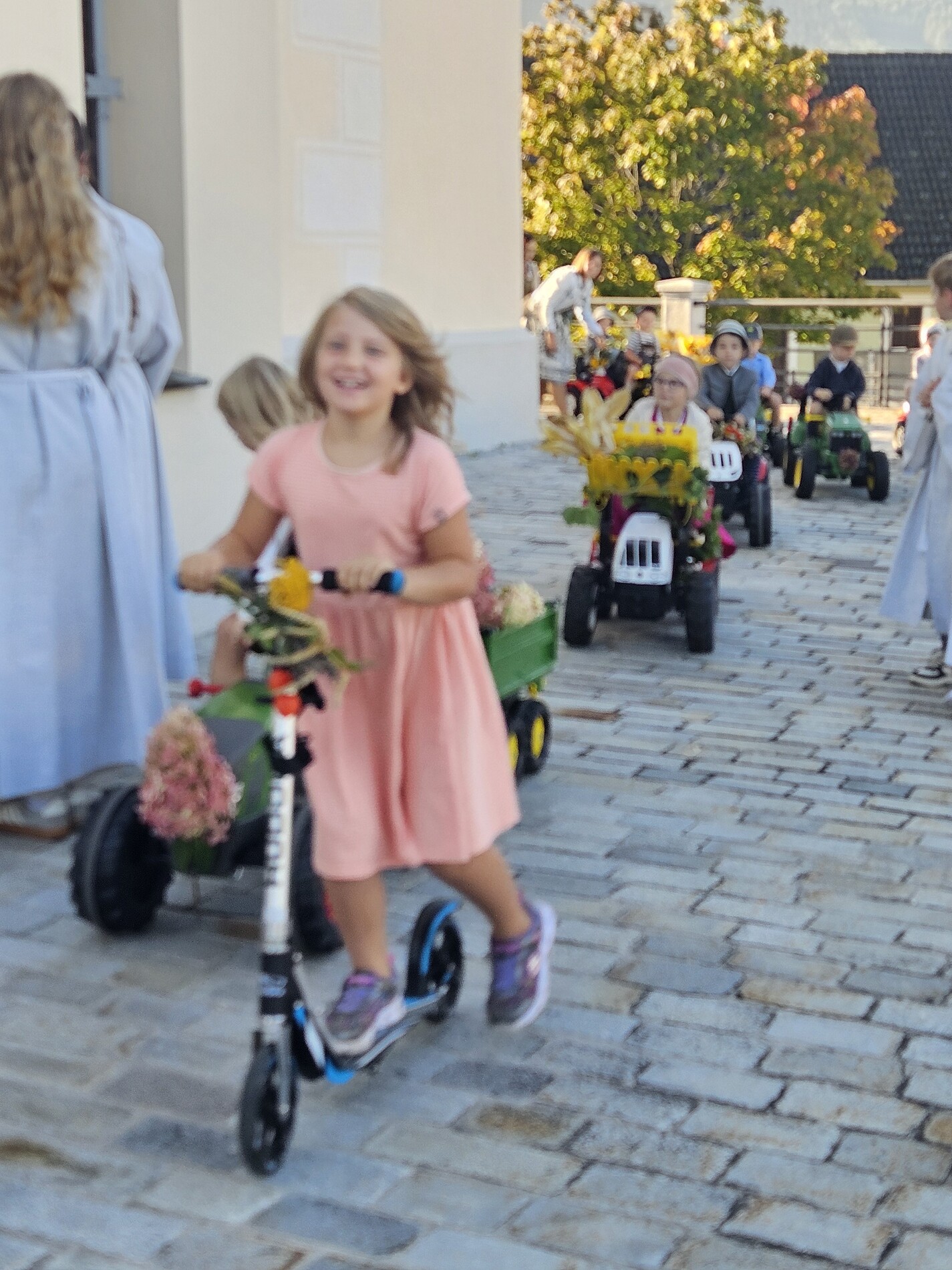Der feierliche Einzug wurde von Kindern auf liebevoll geschmückten Fahrzeugen begleitet – ein fröhliches und berührendes Zeichen ihres Dankes.