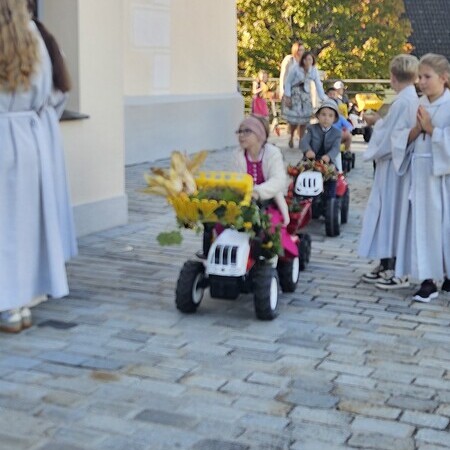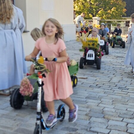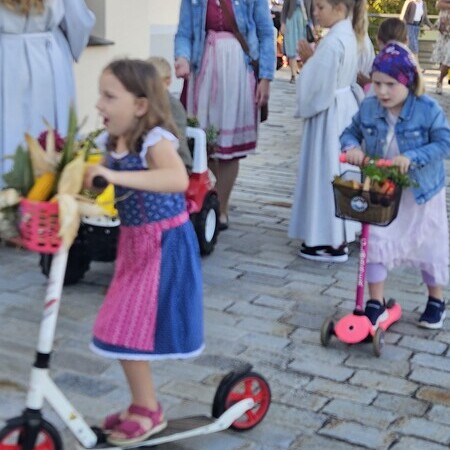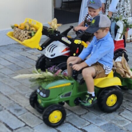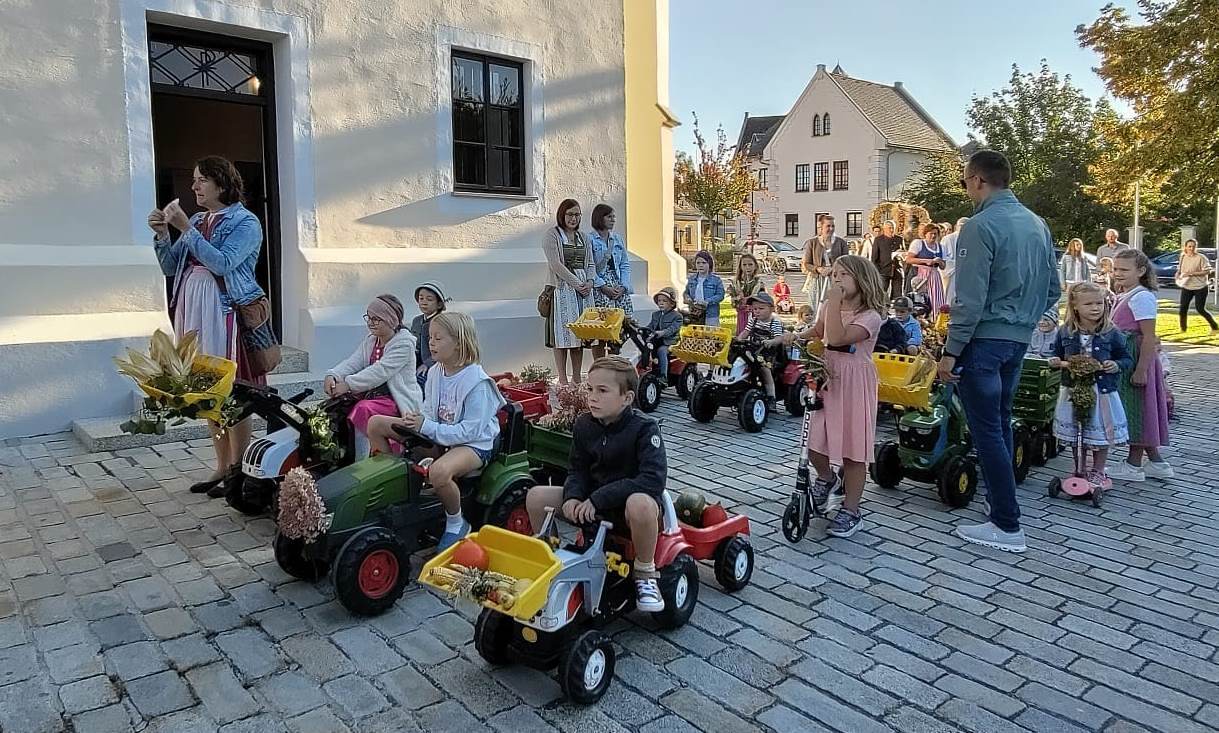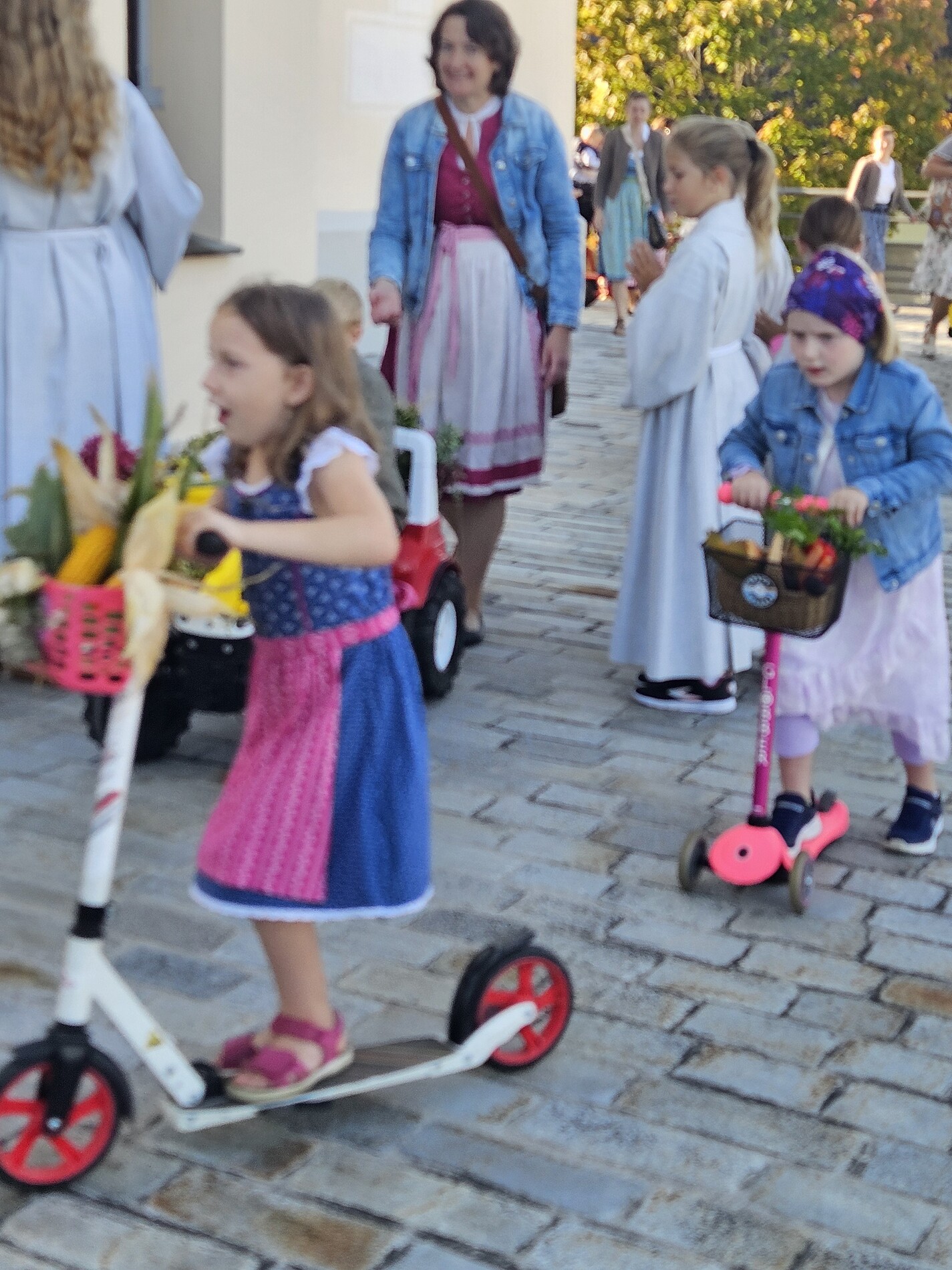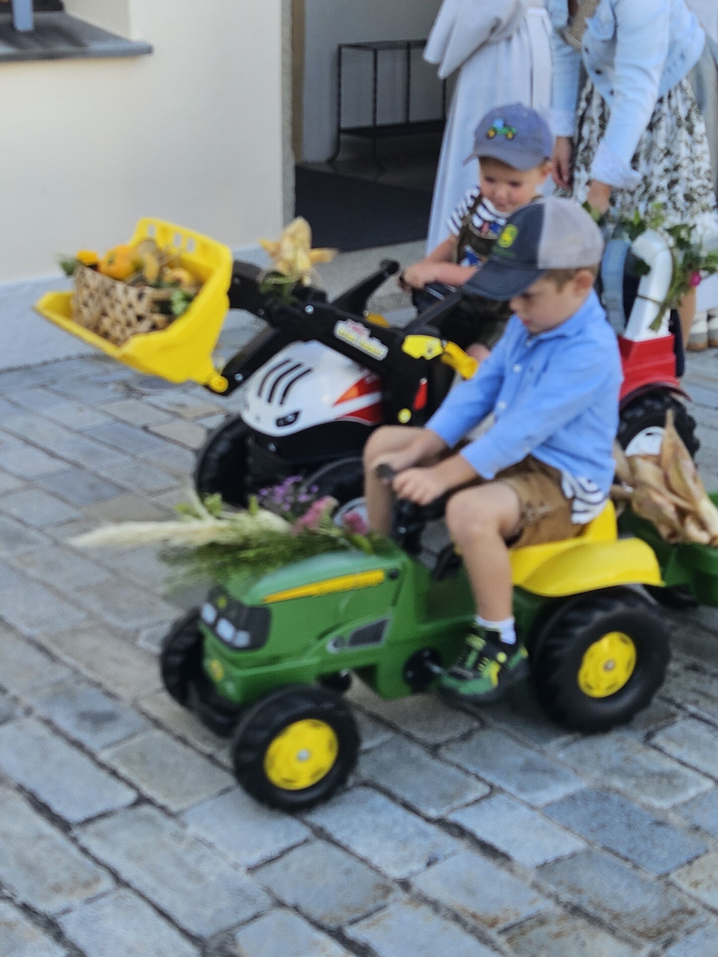 Der feierliche Einzug wurde von Kindern auf liebevoll geschmückten Fahrzeugen begleitet – ein fröhliches und berührendes Zeichen ihres Dankes.