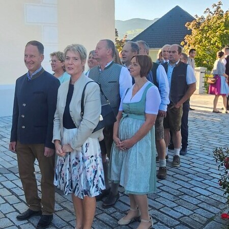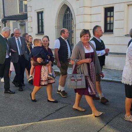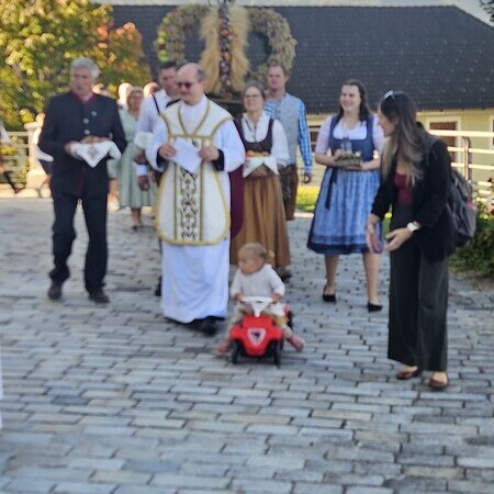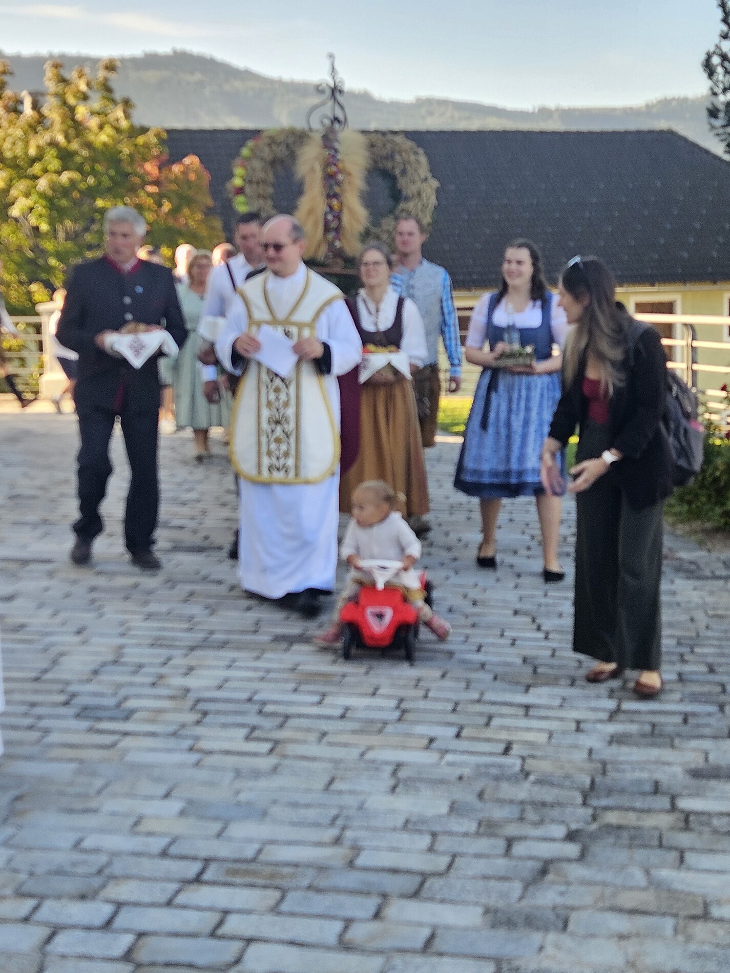 Im Anschluss wurde die Gemeinschaft beim Frühschoppen unterhalb der Kirche gefeiert. Ein herzliches Dankeschön gilt Franz Kloimwieder vom Allhartsbergerhof, der den überdachten Bereich des Gasthofparkplatzes zur Verfügung stellte. Dort – geschützt vor der Sonne und umsorgt von den engagierten Helferinnen und Helfern der Pfarre – genossen die Besucher köstliche Speisen, himmlische Mehlspeisen, frische Krapfen, Bauernhofeis und manch edles Glas Wein.